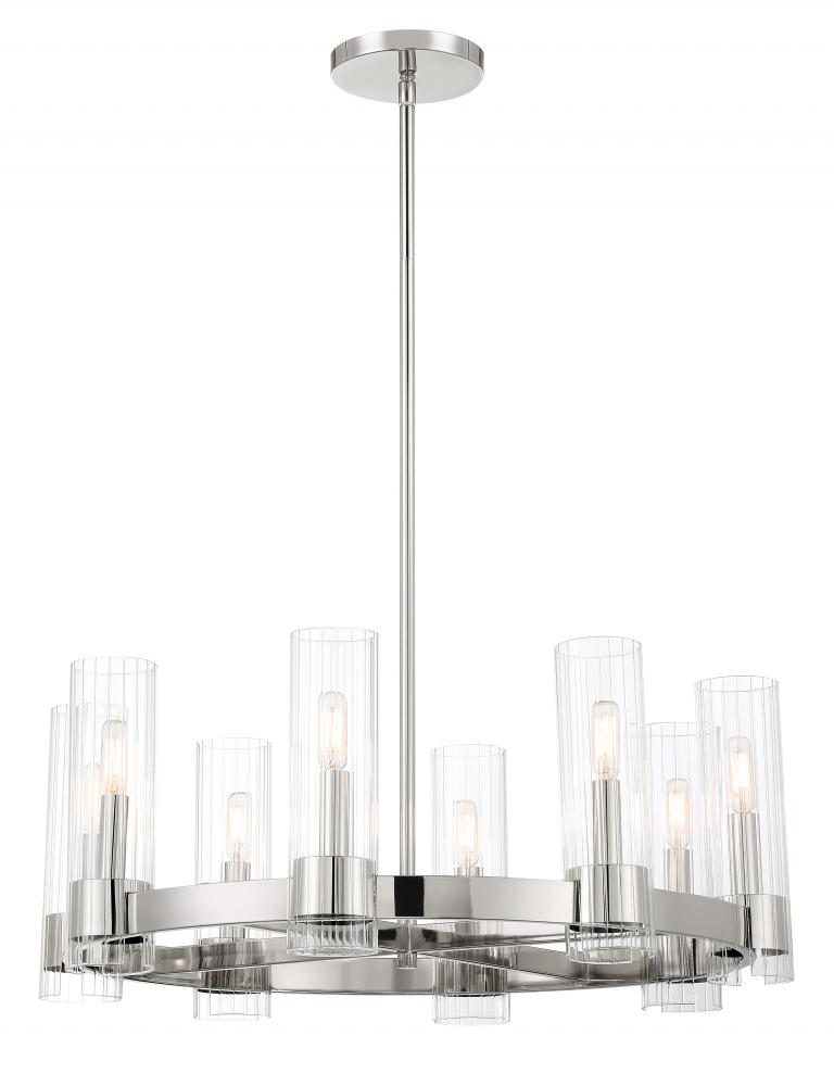 8 Light Chandelier in Chrome with Clear Ribbed Glass