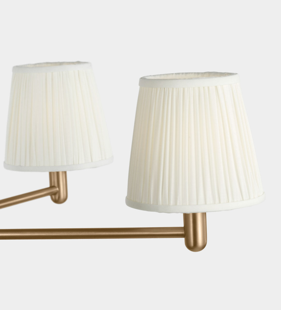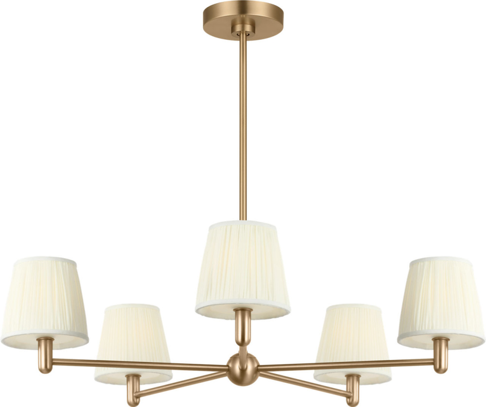 The Vilera 5-Light Chandelier features five white fabric shades set around a slender radial frame. Each shade diffuses light evenly, softening the geometric arms and creating a comfortable glow. Scaled for dining rooms, living areas, or bedrooms, this chandelier brings a balanced presence with a relaxed texture.