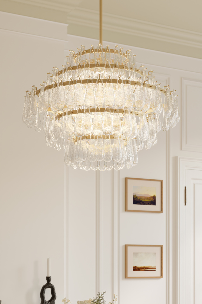 8-Light Pendant - Legacy Brass with Clear Dimpled Glass
