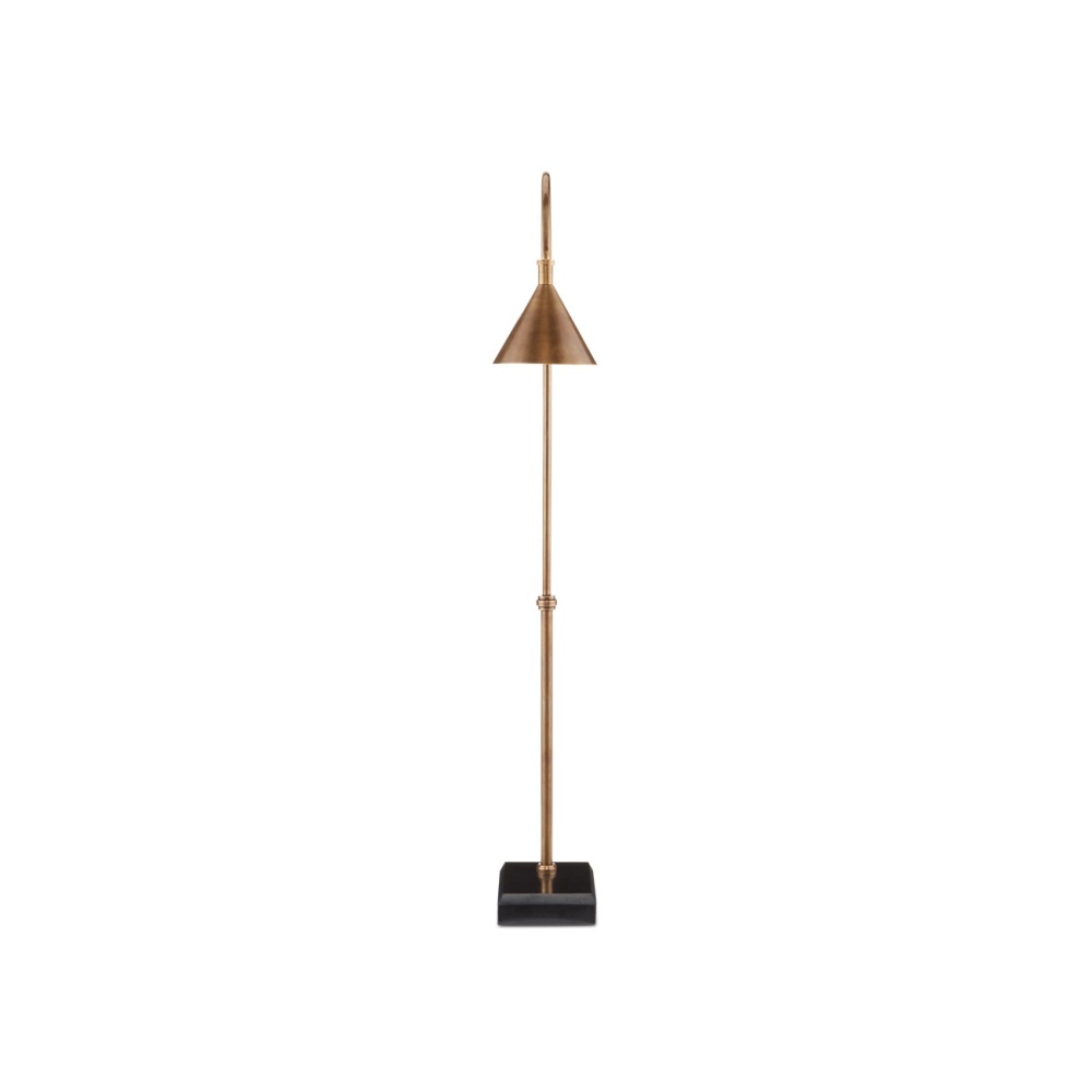 Made of brass in a vintage brass finish, the stem and shade of the Vision Floor Lamp rise from a rectangular black granite base. with the simplest of lines and the ability to shine brightly from behind a comfortable chair or sofa, the gold floor lamp could quickly become a reader's best friend.