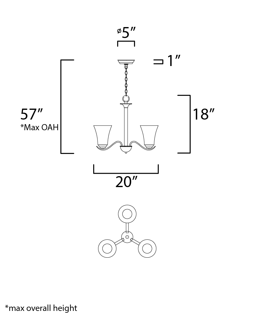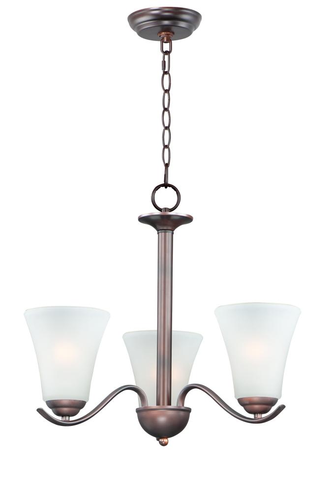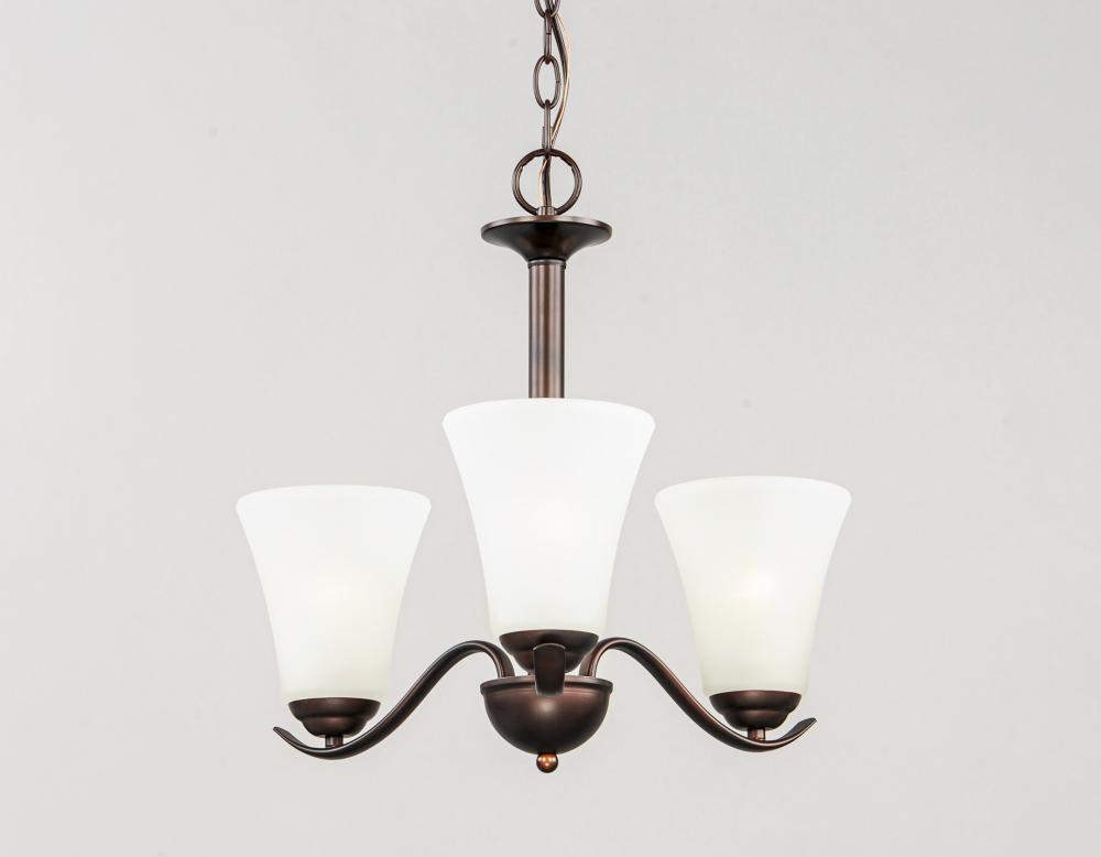 Gently waving arms of Satin Nickel or Oil Rubbed Bronze support tall-profile Frosted glass shades creating a scale normally not found in this category of lighting. The bath vanity may be installed up or down and also includes a Polished Chrome finish.