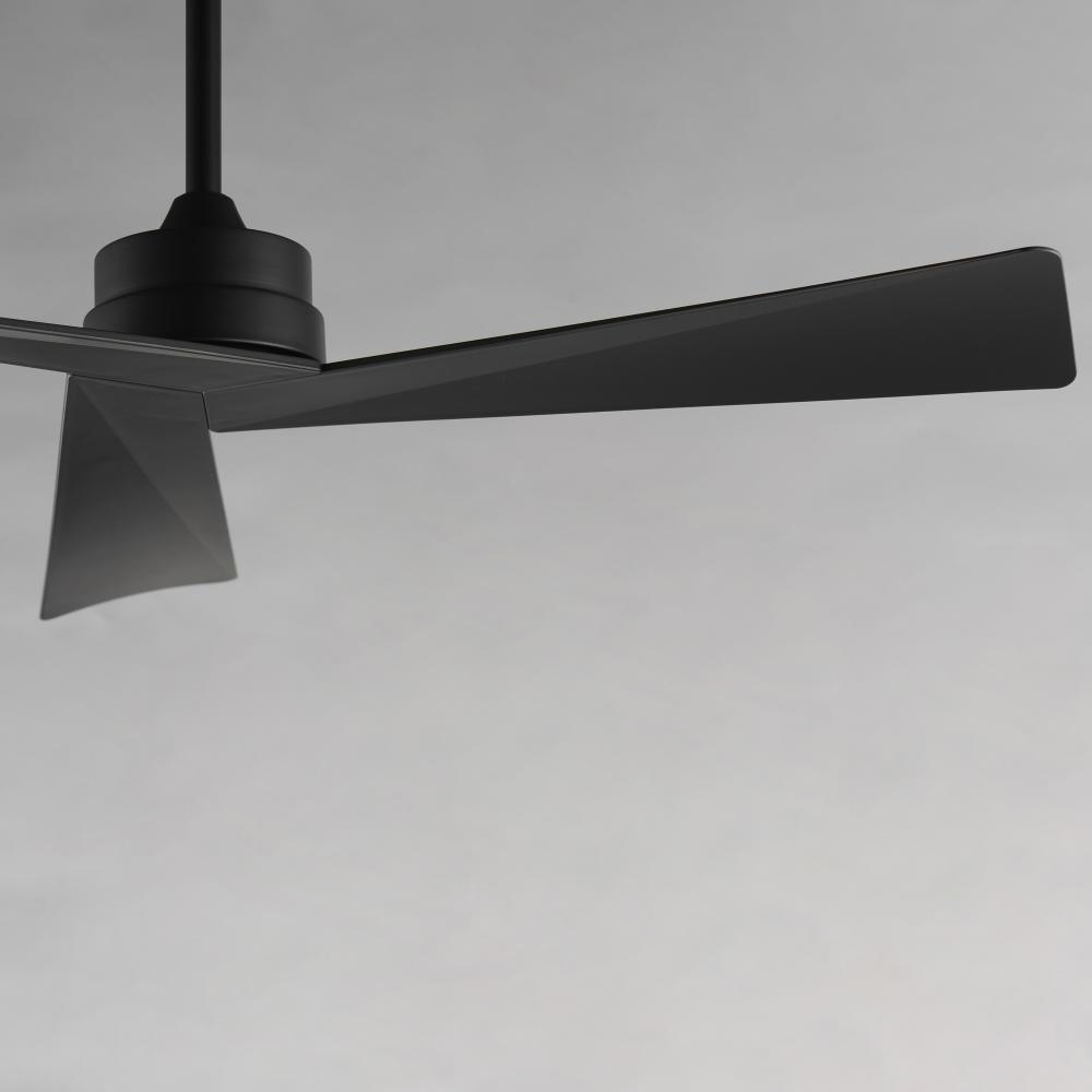 Sharp angular blades come together at the center housing of this fan for a modern, yet transitional look. Available in finishes that match most interior spaces, select from Matte Black, Satin Nickel with Greywood, Natural Aged Brass with White Blades and C