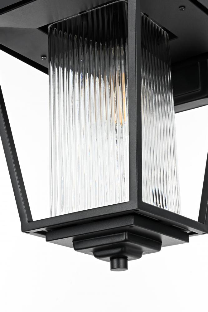 The clear ribbed glass panel diffuses light beautifully, creating a soft and inviting ambiance for your outdoor space.