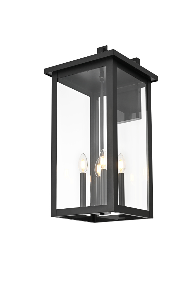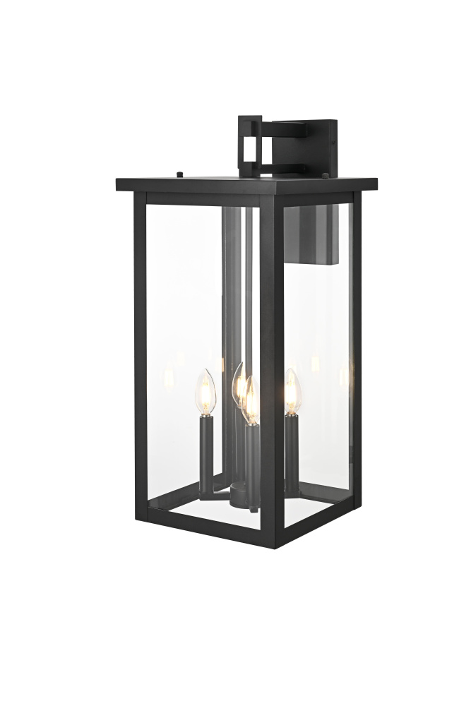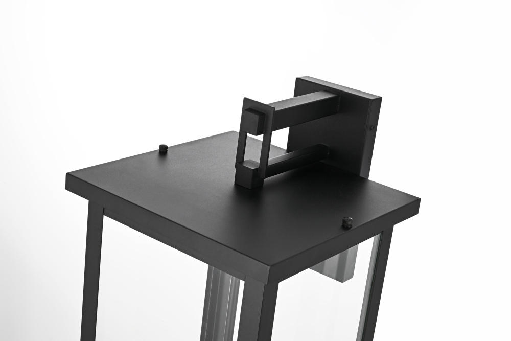 This modern outdoor wall sconce combines simplicity and functionality to enhance your home's exterior. Crafted with durable iron and crystal-clear glass panels, it brings a sleek and modern touch that will withstand the elements while delivering outstanding style. Its linear rectangular frame, paired with a timeless black finish, makes it the perfect addition for enhancing the architectural appeal of porches, entryways, or patios. The transparent glass panes give an uninterrupted view of the warm bulb, creating a welcoming ambiance for your outdoor spaces.