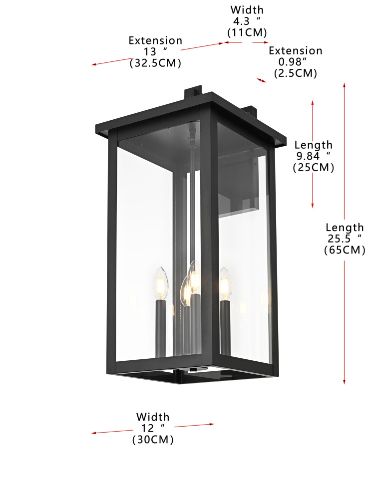 Wall sconce W12" E13" H25.5" L4 Black (1Box)