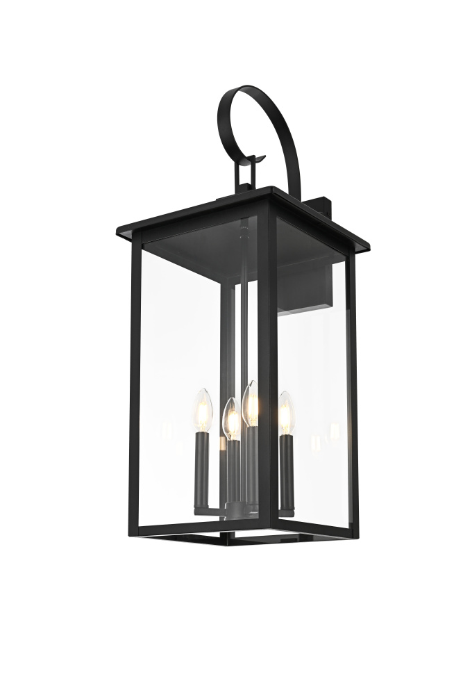 This outdoor wall sconce, crafted from iron and glass, exudes a sophisticated balance between traditional charm and modern simplicity. The rectangular silhouette, clean lines, and sturdy frame make it a versatile addition to a range of exterior design styles. Featuring E12 socket bases, it can accommodate candelabra bulbs, enhancing the vintage lantern appeal of the design. The clear glass panels showcase the beauty of the bulbs, creating a warm and inviting glow for patios, entryways, or garden spaces. Designed for outdoor durability, this sconce not only enhances the aesthetics of your home but also provides essential lighting for a secure and welcoming atmosphere.