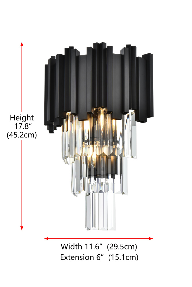 Elegant 3400W12BK - Wall Sconce W12"H18"L2 Black