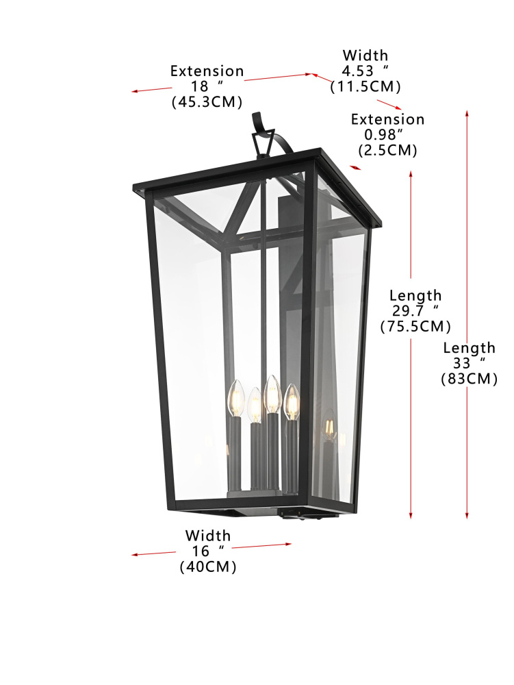 Elegant OD334W33BK - Wall sconce W16" E18" H33" L4 Black