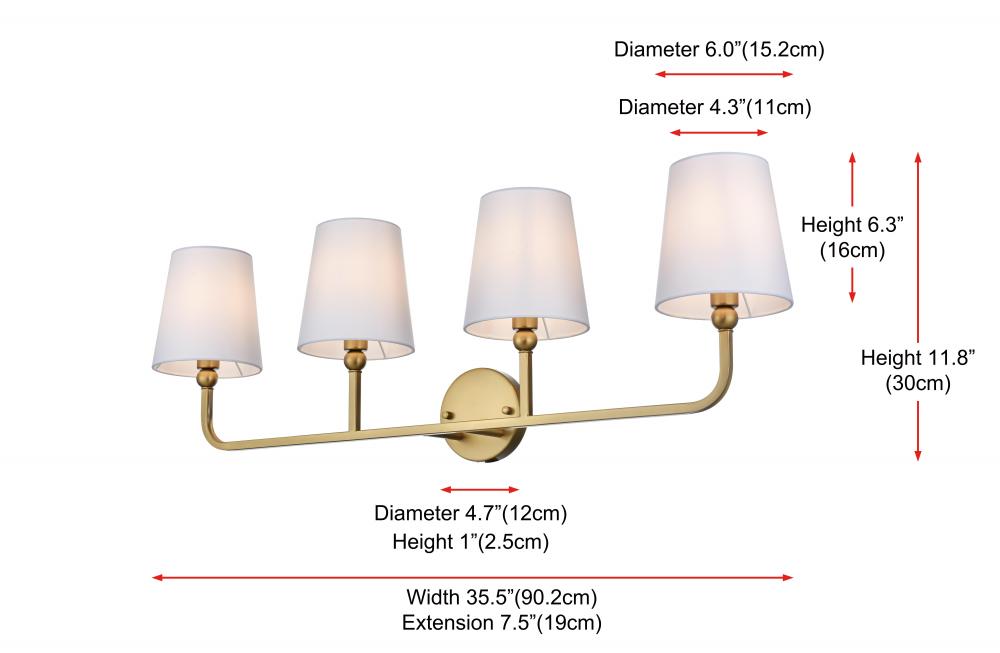 Wall sconce W35.5"x E7.5" x H11.8"L4 Satin Gold