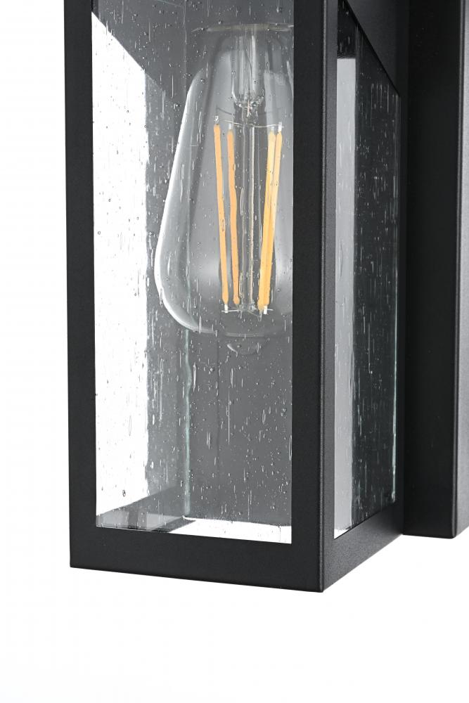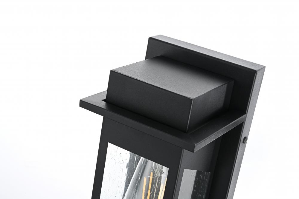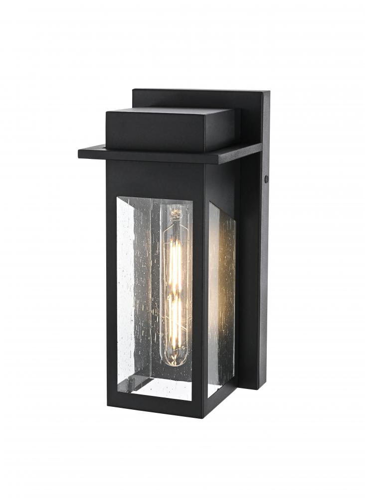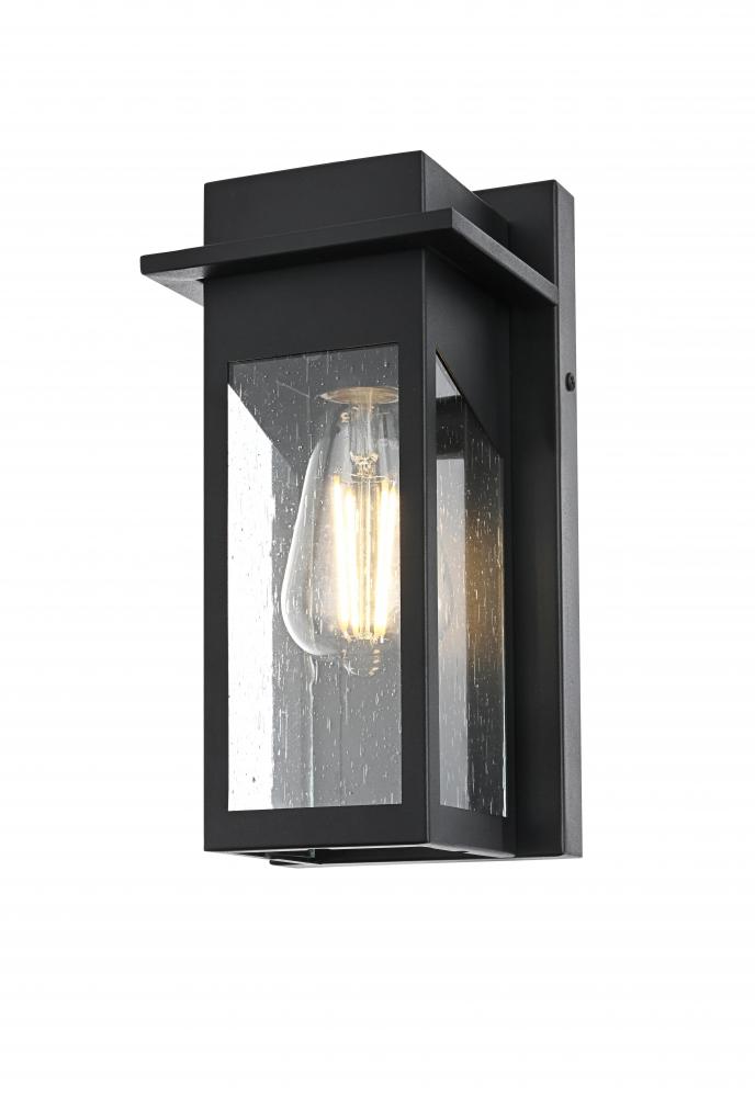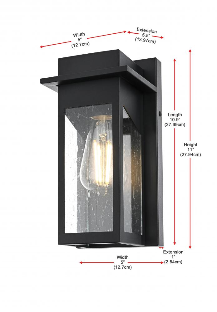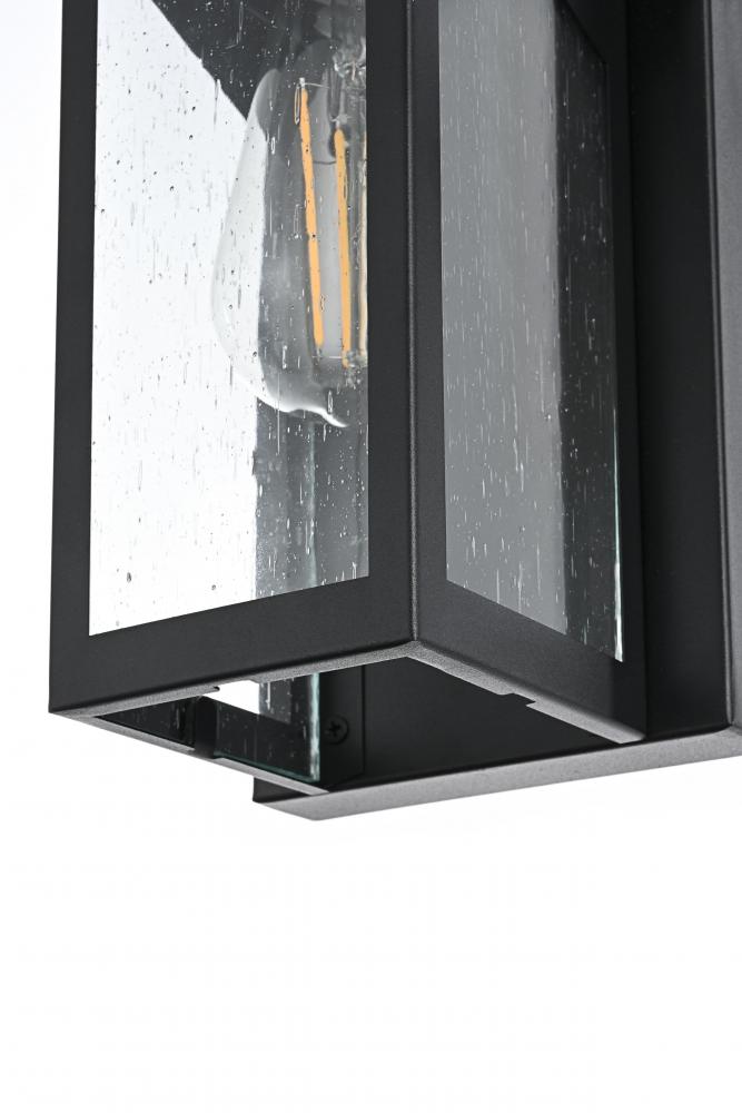 This outdoor wall sconce boasts a stunning combination of iron and seeded glass to create a modern and timeless appeal for your home's exterior. The sturdy iron frame envelops clear, textured glass panels, giving off a warm and inviting glow. The geometric pattern adds visual interest and sophistication, while the E26 socket allows you to pair it with a vintage-style bulb for that perfect accent lighting. This light effortlessly blends with a variety of styles, enhancing the charm of any outdoor space—from porches and patios to entryways. It’s the perfect piece to transform your exterior with a soft, ambient glow while showcasing an eye-catching architectural silhouette.