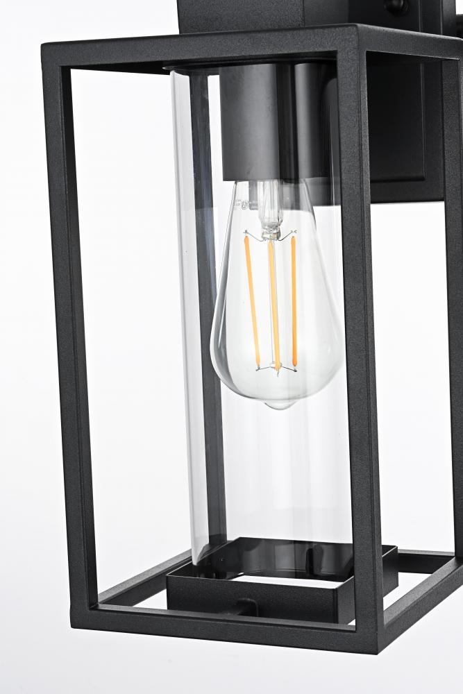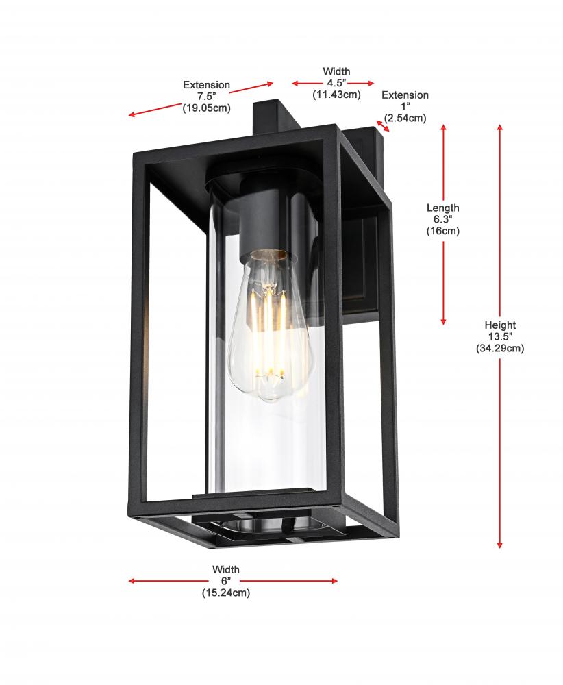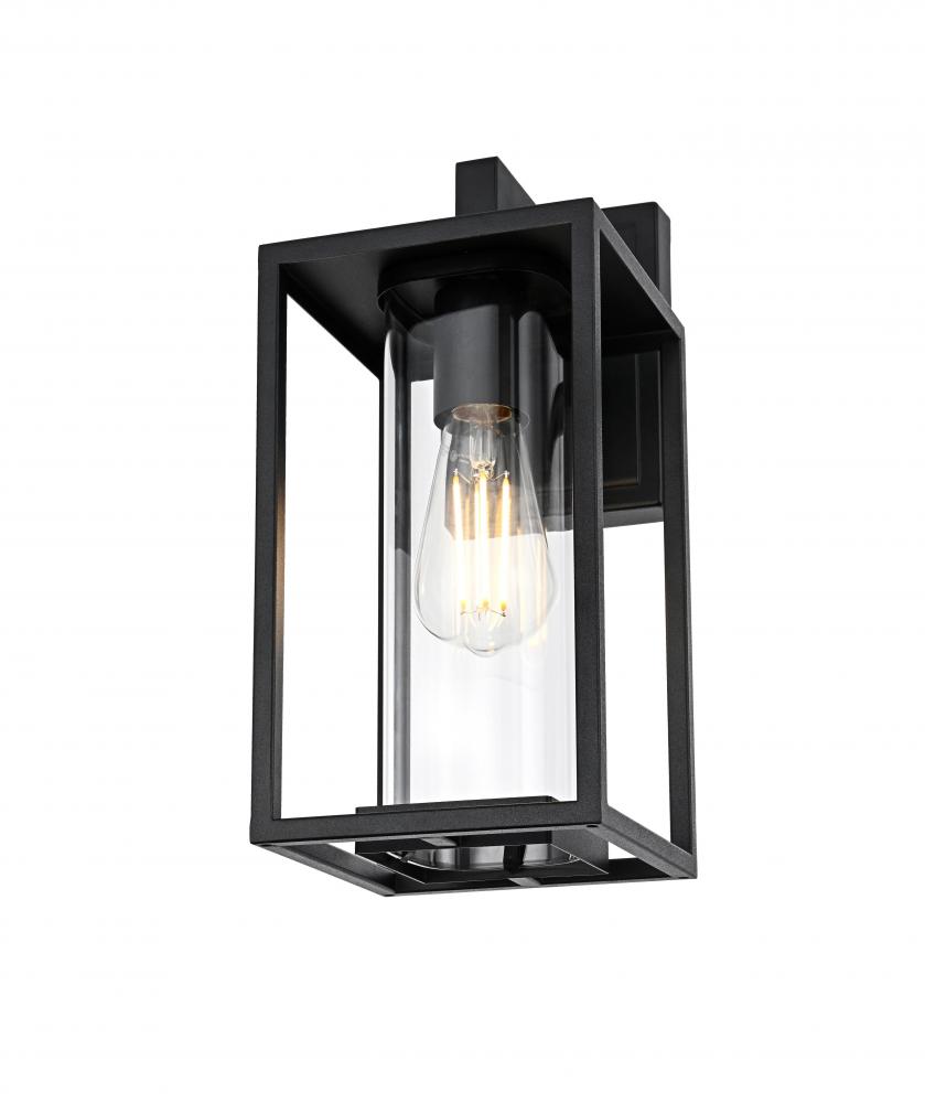 Introduce timeless charm and functionality to your outdoor space with this modern wall sconce. Crafted from durable iron and paired with a sleek glass cylinder, this sconce brings clean lines and a minimalist vibe to your exterior decor. It is thoughtfully designed to create a warm, ambient glow, ideal for front porches, patios, and entryways. The sturdy iron frame gives it a robust look, while the clear glass ensures the perfect display of your chosen bulb, allowing for a soft, inviting illumination. Built with practicality in mind, this fixture is as stylish as it is practical, perfect for complementing a range of exterior styles.