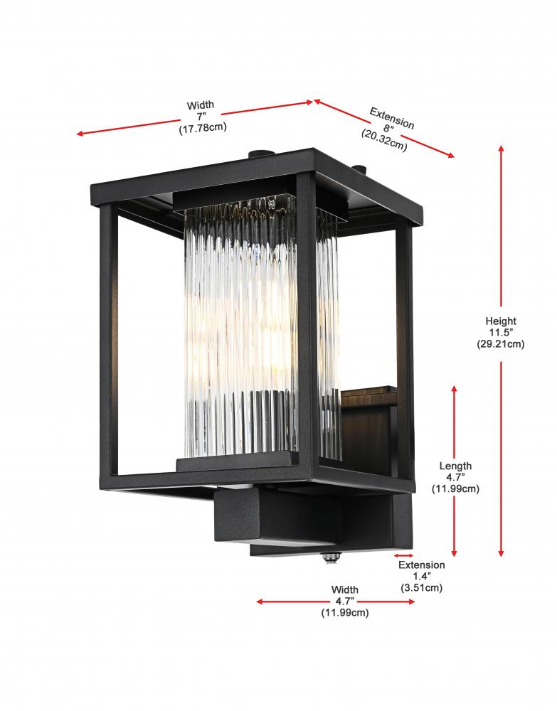 Elevate the aesthetic of your outdoor space with this sophisticated wall sconce that combines form and function effortlessly. Featuring a sleek, modern rectangular lantern design, this sconce is constructed with an iron frame and beautiful vertical fluted glass panels that diffuse light gracefully. The built-in dusk to dawn sensor ensures that your home remains well-lit at night while saving energy during the day by automatically turning the light off at sunrise. Finished in matte black, this sconce is versatile enough to suit various exterior styles, adding both elegance and practicality to patios, entryways, and garages. with an ETL rating for wet locations and durable weather-resistant construction, this outdoor wall sconce is both stylish and dependable, providing a warm, welcoming glow to your outdoor living area.
