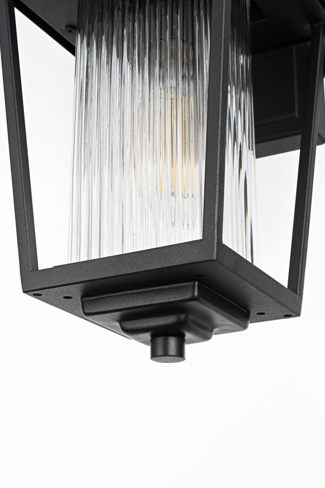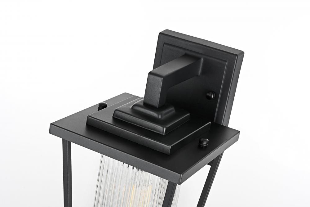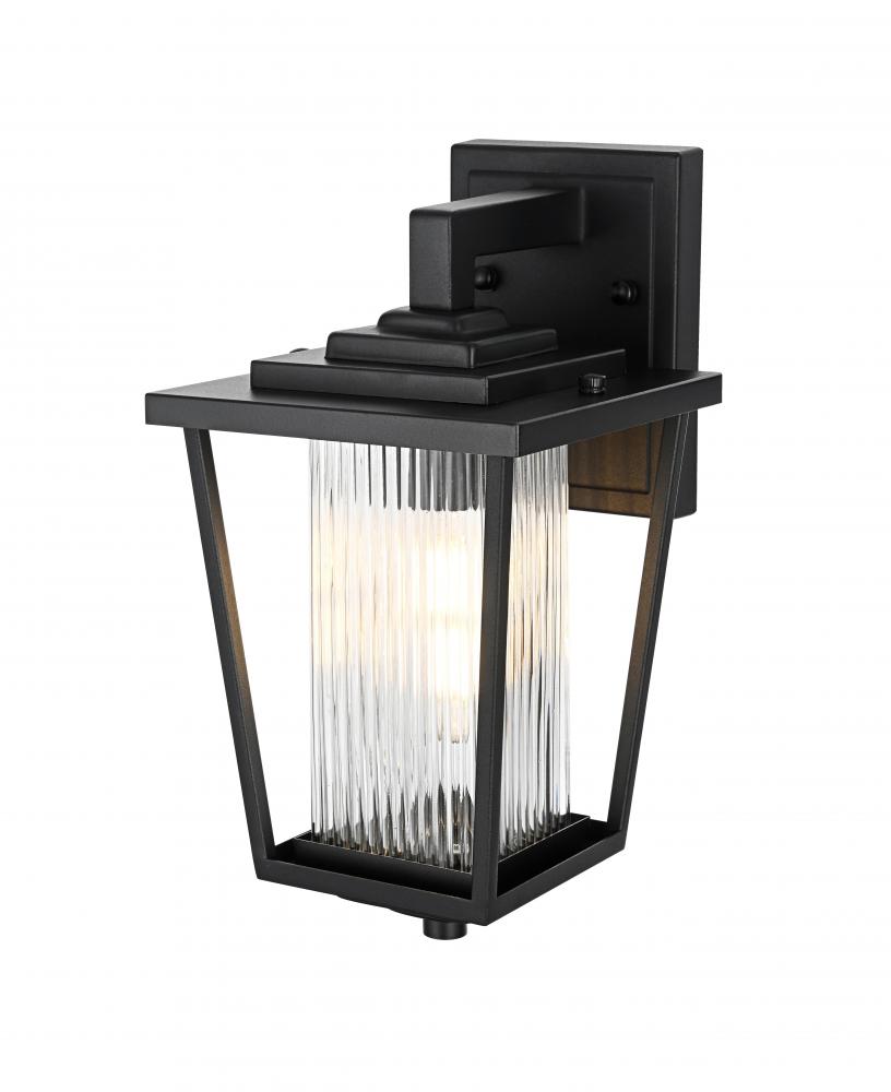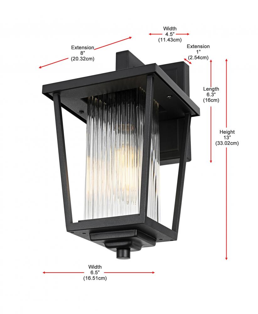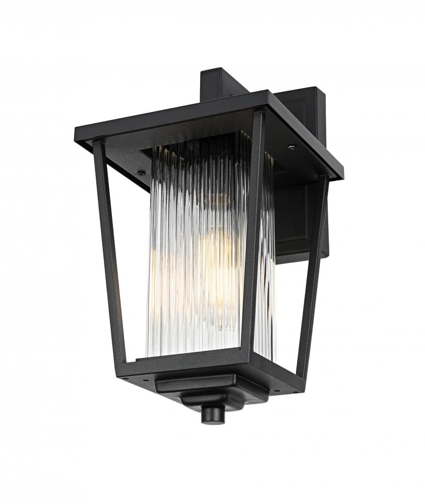 Add a touch of modern industrial flair to your home's exterior with this outdoor wall sconce. Featuring a matte black iron frame and ribbed glass panels, this sconce brings a sophisticated yet understated charm to your outdoor decor. The ribbed glass diffuses light softly, providing an inviting glow that's perfect for illuminating patios, doorways, or garden paths. Built to withstand the elements, this wall sconce is as durable as it is stylish, ensuring a reliable lighting solution for years to come. with its straightforward installation process, this light is a simple yet impactful way to upgrade your outdoor space.