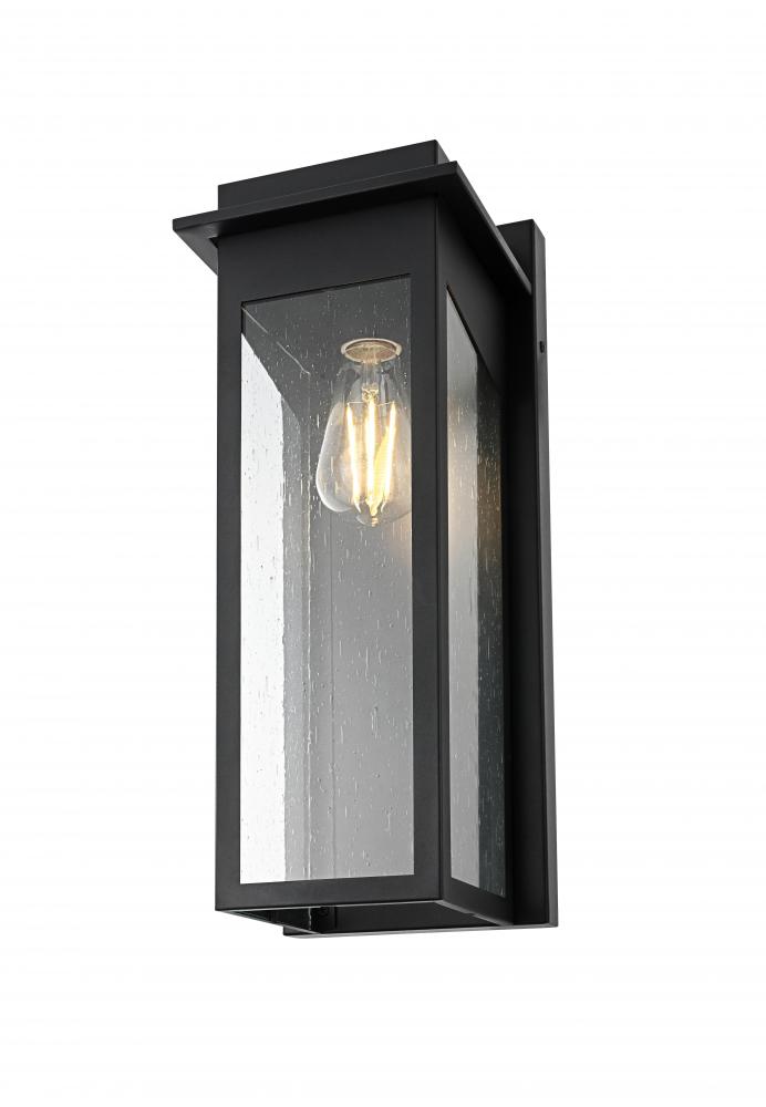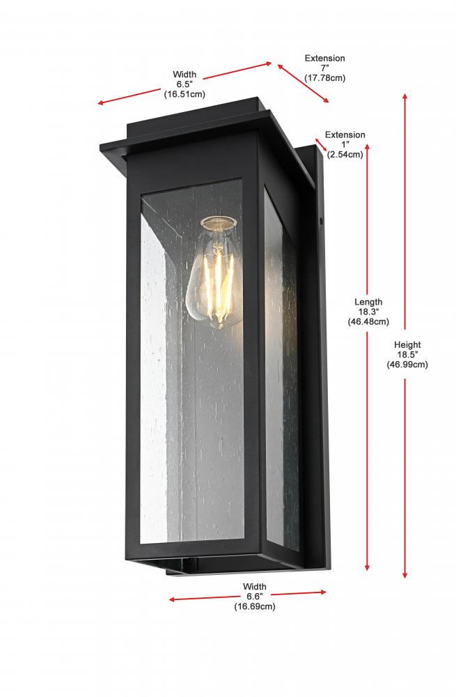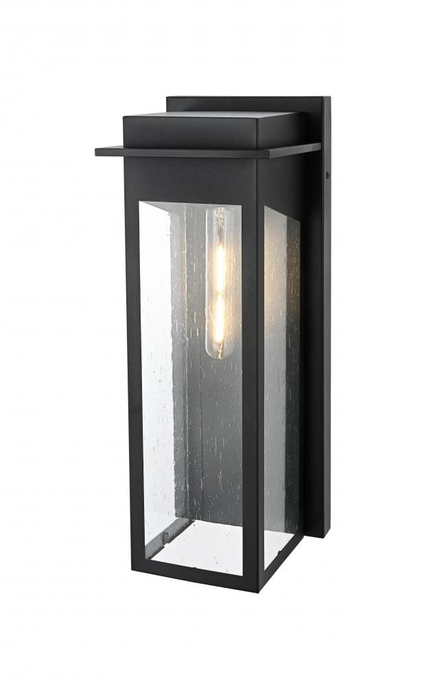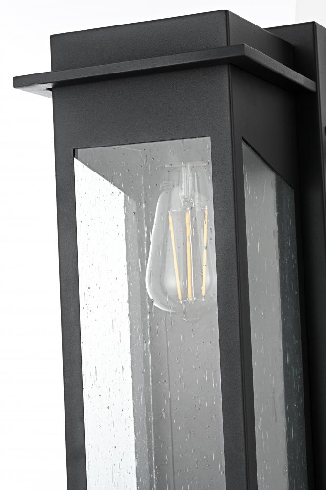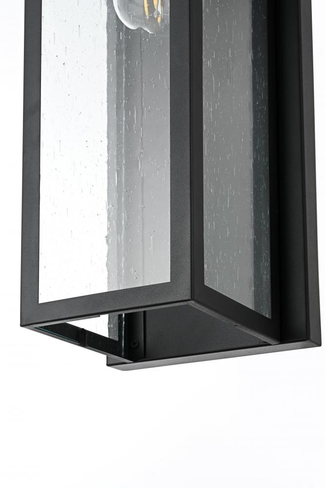 This outdoor wall sconce boasts a stunning combination of iron and seeded glass to create a modern and timeless appeal for your home's exterior. The sturdy iron frame envelops clear, textured glass panels, giving off a warm and inviting glow. The geometric pattern adds visual interest and sophistication, while the E26 socket allows you to pair it with a vintage-style bulb for that perfect accent lighting. This light effortlessly blends with a variety of styles, enhancing the charm of any outdoor space—from porches and patios to entryways. It’s the perfect piece to transform your exterior with a soft, ambient glow while showcasing an eye-catching architectural silhouette.