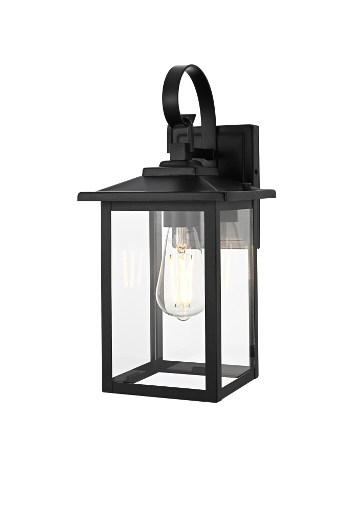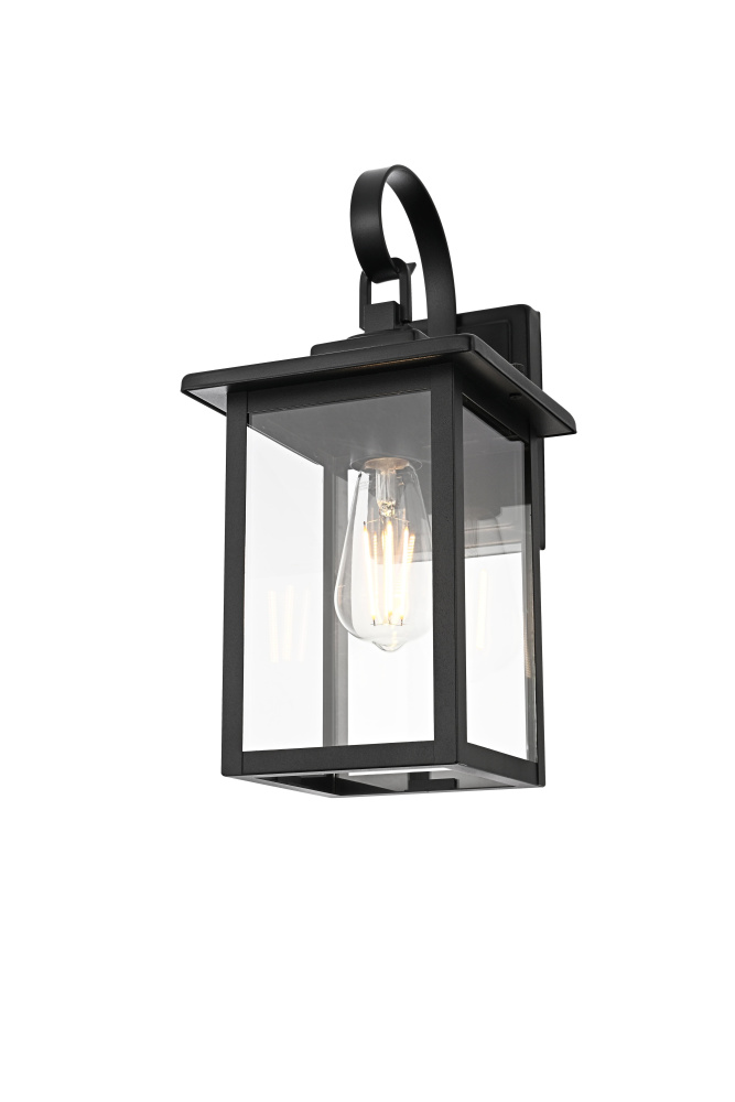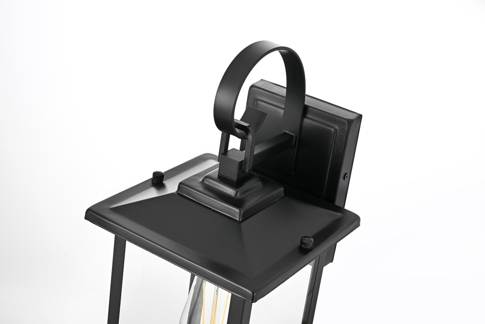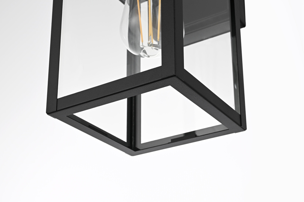 This outdoor wall sconce, crafted from iron and glass, exudes a sophisticated balance between traditional charm and modern simplicity. The rectangular silhouette, clean lines, and sturdy frame make it a versatile addition to a range of exterior design styles. Featuring an E12 socket base, it can accommodate candelabra bulbs, enhancing the vintage lantern appeal of the design. The clear glass panels showcase the beauty of the bulbs, creating a warm and inviting glow for patios, entryways, or garden spaces. Designed for outdoor durability, this sconce not only enhances the aesthetics of your home but also provides essential lighting for a secure and welcoming atmosphere.