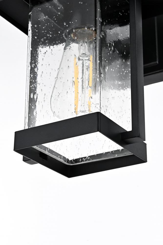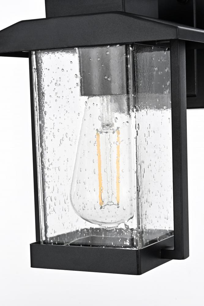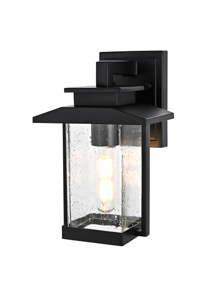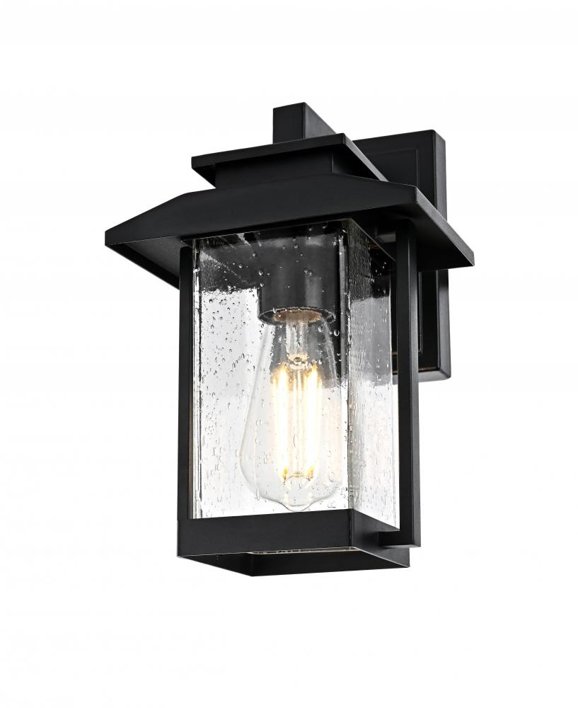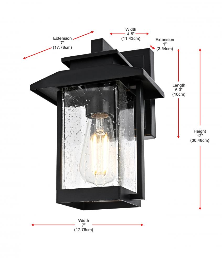 This outdoor wall sconce is an impressive blend of modern style and functionality, ideal for enhancing the ambiance of your home's exterior. Crafted from high-quality iron and complemented by textured glass, this sconce exudes a sense of timeless beauty that feels both sturdy and refined. Its crisp geometric lines and clean black finish give it a contemporary touch, while the seeded glass panel subtly diffuses the light, adding a charming glow that instantly elevates the atmosphere. Perfect for porches, patios, or garden paths, this sconce is designed to create a welcoming, radiant entrance for guests. with its straightforward design, it offers an effortlessly stylish way to brighten your outdoor space without overwhelming your existing decor.