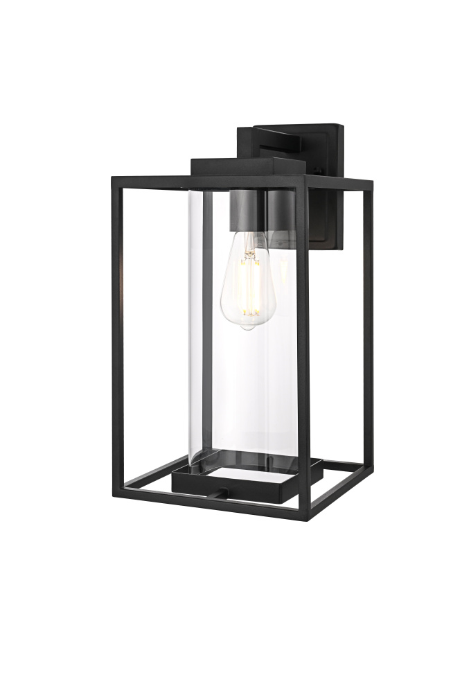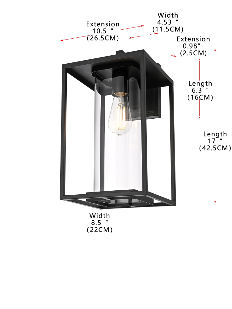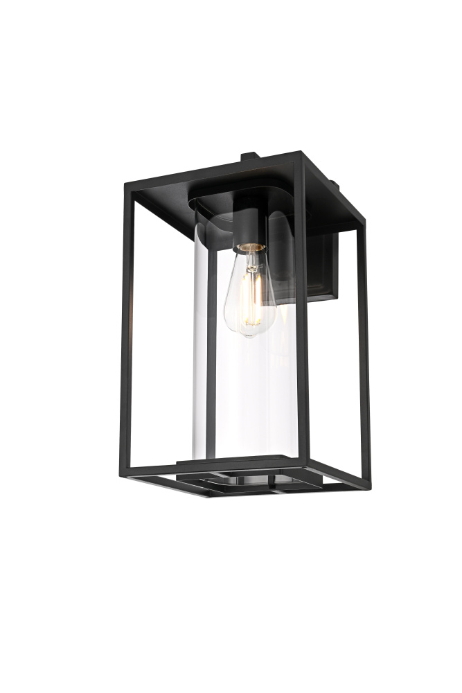 Introduce timeless charm and functionality to your outdoor space with this modern wall sconce. Crafted from durable iron and paired with a sleek glass cylinder, this sconce brings clean lines and a minimalist vibe to your exterior decor. It is thoughtfully designed to create a warm, ambient glow, ideal for front porches, patios, and entryways. The sturdy iron frame gives it a robust look, while the clear glass ensures the perfect display of your chosen bulb, allowing for a soft, inviting illumination. Built with practicality in mind, this fixture is as stylish as it is practical, perfect for complementing a range of exterior styles.