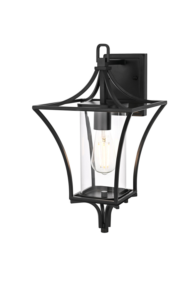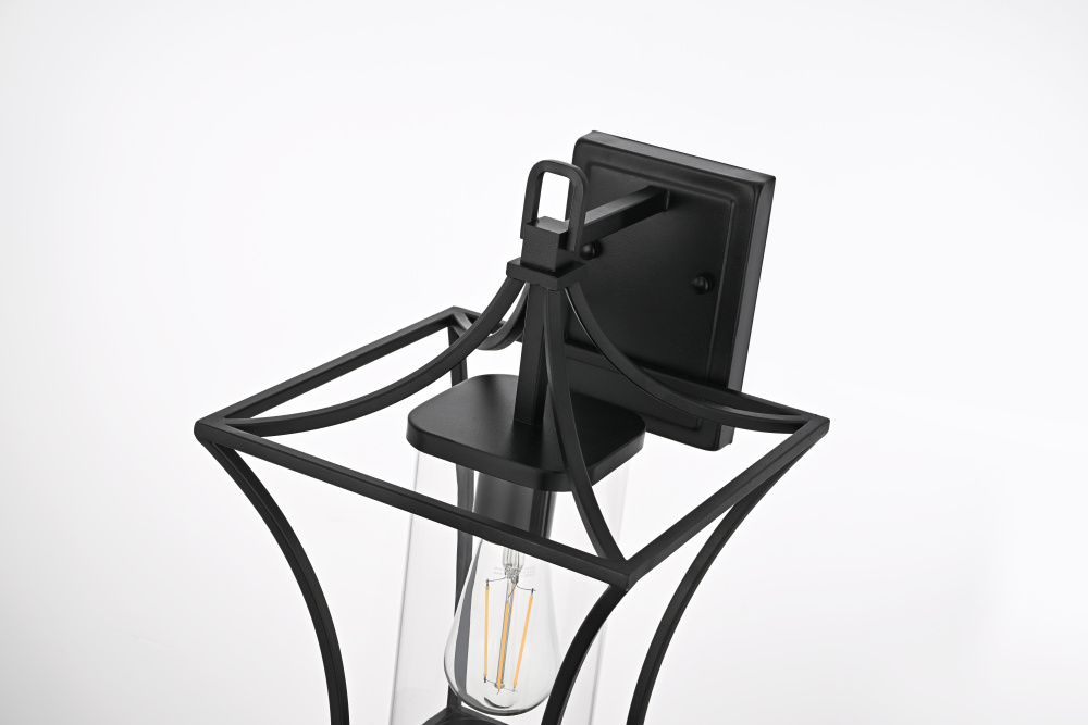 This outdoor wall sconce exudes timeless charm with its flowing curves and transparent glass tube, perfectly blending classic lantern styling with modern sensibilities. The frame, crafted from durable iron and complemented by a clear glass cylinder, ensures this piece stands out as a tasteful addition to any home's exterior. Its minimalist lines and elegant swooping shape provide a sophisticated look, making it a wonderful option for flanking doorways or illuminating pathways. Designed to withstand the elements, this sconce offers a durable, long-lasting lighting solution that enriches both safety and beauty for any outdoor space.
