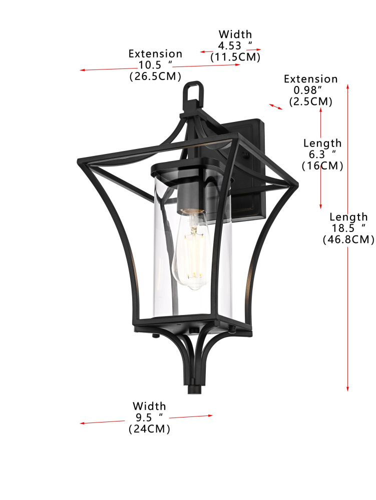 Wall sconce W9.5" E10.5" H18.5" L1 Black (1Box)
