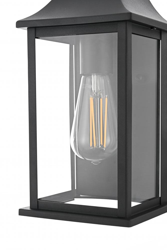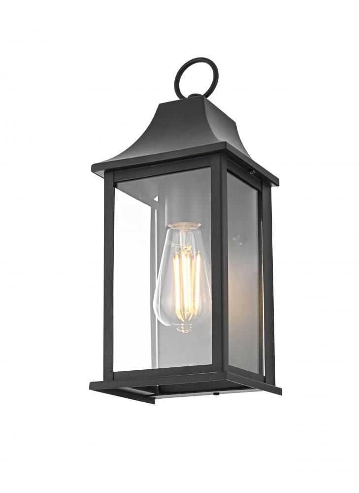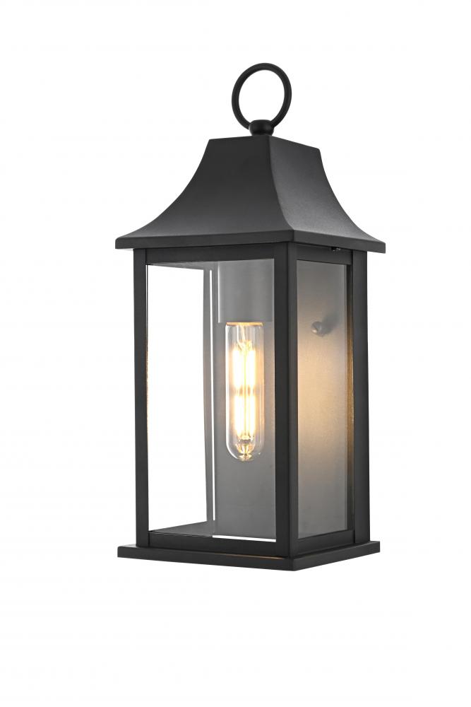 Transform your outdoor spaces with this distinctive wall lantern, where vintage-inspired design meets modern craftsmanship. Built from sturdy iron and softened with frosted glass, this piece blends clean rectangular lines with a gently curved cap and decorative ring. The single vintage-style bulb casts a warm, soothing glow, ideal for creating a welcoming atmosphere. Finished in a versatile matte black, this weather-resistant lantern is as practical as it is stylish—perfect for adding character to patios, entryways, or garden paths.
