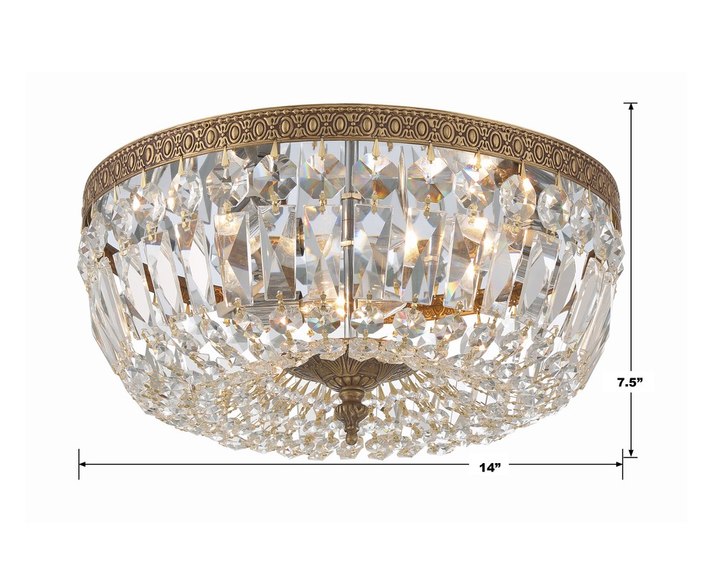 Crystorama 714-OB-CL-MWP - Waltham 14'' Clear Hand Cut Olde Brass Flush Mount