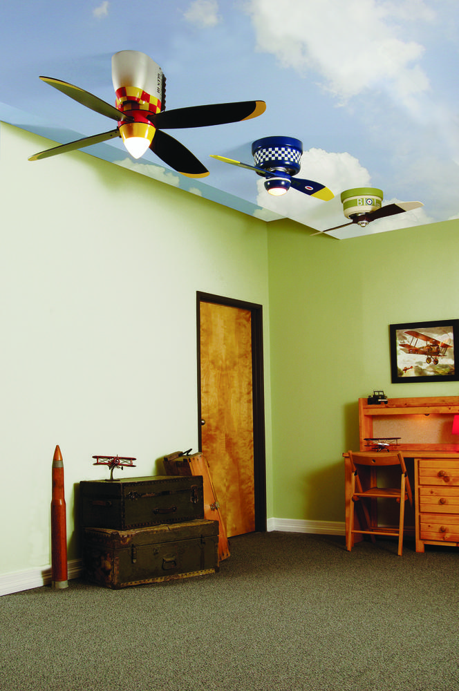 Perfect for a boy's room, playroom, or for any plane aficionado; the War Planes 48" ceiling fan is a tribute to the heroic fighter pilots and planes of yesterday. At 48" in diameter, this classic reproduction features small space flushmount installation, non-dimmable LED light kit, standard 3-speed reversible motor and a Lifetime Limited Warranty.