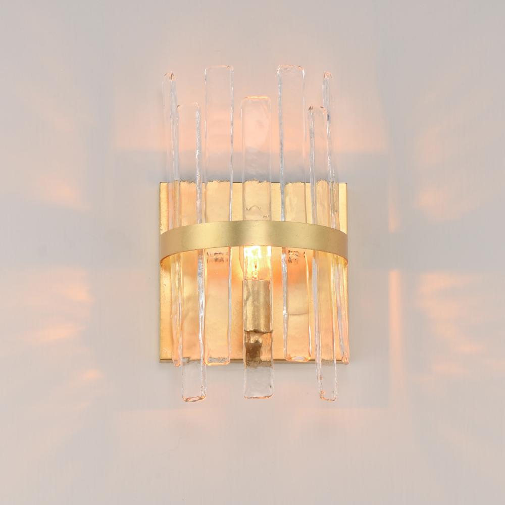 Gracefully flowing molten glass panels with uniquely organic aesthetic encircle rings of rich Darkened Bronze metal or hand-applied Gold Leaf. This refined interpretation of tiered glass pendants exudes warmth and elegance, effortlessly blending a moody am