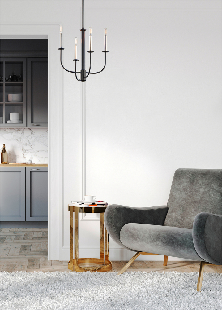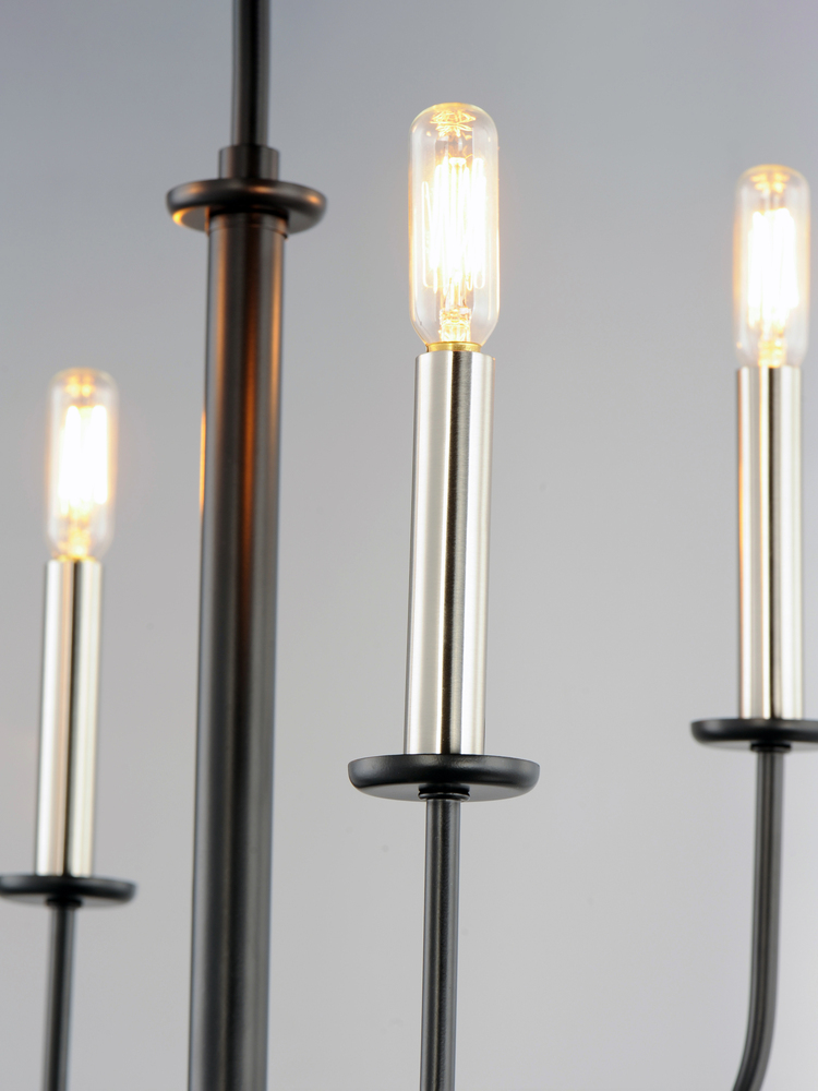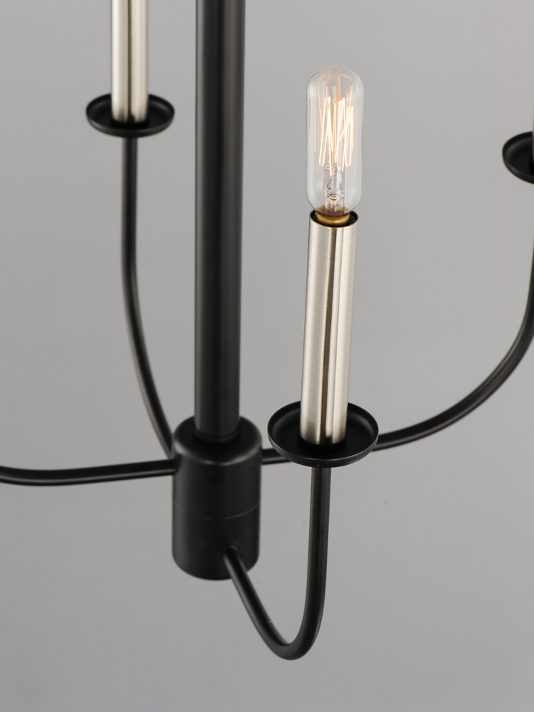 Arms sweep upward from an adjustable collector to create a minimal yet stately design. Available in Black, Satin Brass, and Satin Nickel, this collection provides a transitional look for a variety of settings.