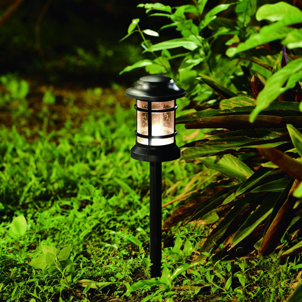 The Westmont low voltage integrated LED path light features a timeless mission design while offering functionality, energy savings, and security for your outdoor spaces. This decorative landscape light features a black finish with a clear seeded glass shade to coordinate perfectly with your exterior. Connect this walkway light with other landscape lighting products to customize and highlight your outdoor spaces. Ground stake and connector cable included. Low voltage transformer required (sold separately). This light offers functionality, energy savings, and security for your outdoor spaces.