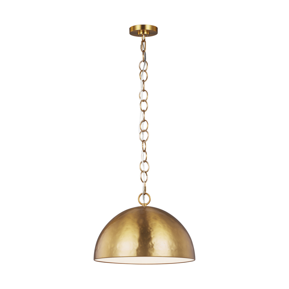 Oversized pendants offered in two sizes and two finishes: Burnished Brass and Polished Nickel