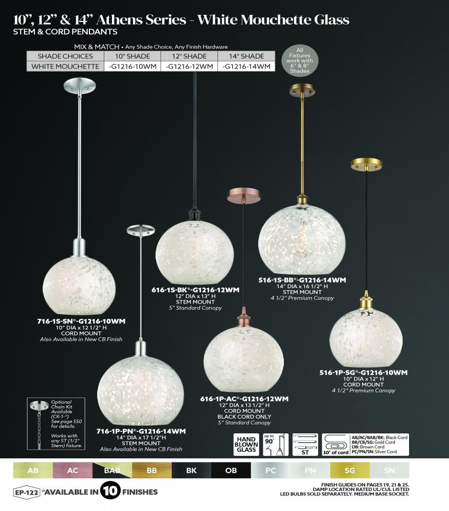 Innovations Lighting 516-1P-AB-G1216-10WM - White Mouchette - 1 Light - 10 inch - Antique Brass - Stem Hung - Mini Pendant