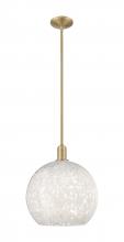 White Mouchette - 1 Light - 14 inch - Antique Brass - White Mouchette shade - Stem hung - Mini Pendant