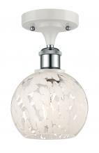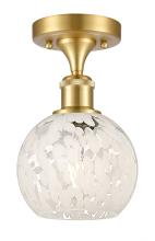 White Mouchette - 1 Light - 6 inch - Antique Brass - White Mouchette Shade - Semi-Flush Mount