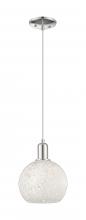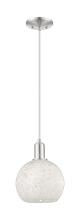 White Mouchette - 1 Light - 8 inch - Antique Brass - White Mouchette shade - Cord hung - Mini Pendant