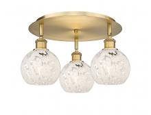 White Mouchette - 3 Light - 18 inch - Antique Brass - White Mouchette Shade - Semi-Flush Mount