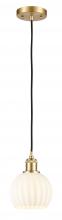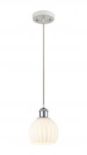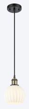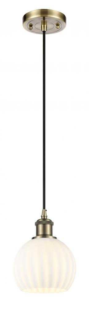 White Venetian - 1 Light - 6 inch - Antique Brass - White Venetian Shade - Cord Hung - Mini Pendant