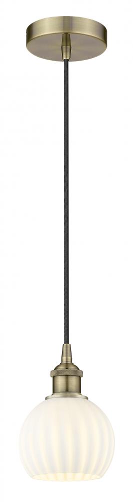 White Venetian - 1 Light - 6 inch - Antique Brass - Cord Hung - Mini Pendant