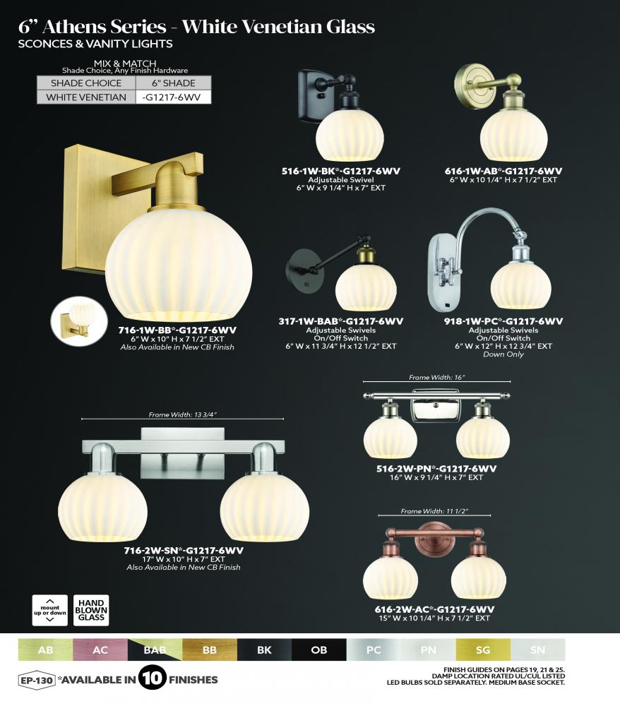 White Venetian - 1 Light - 6 inch - Antique Brass - White Venetian shade - Sconce