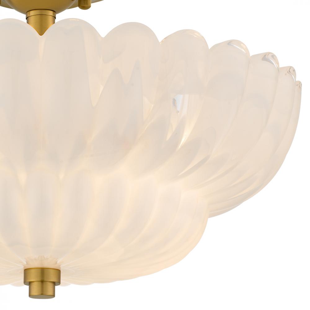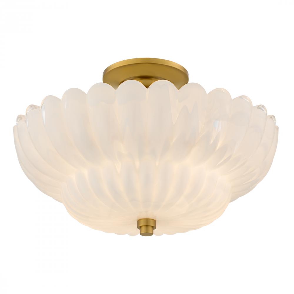 The Whitecap Collection captures a sense of soft elegance with its scalloped glass and graceful silhouette. Gentle curves and glowing finishes create a light that feels warm, inviting, and effortlessly refined. The semi-flush mount features brushed gold pa