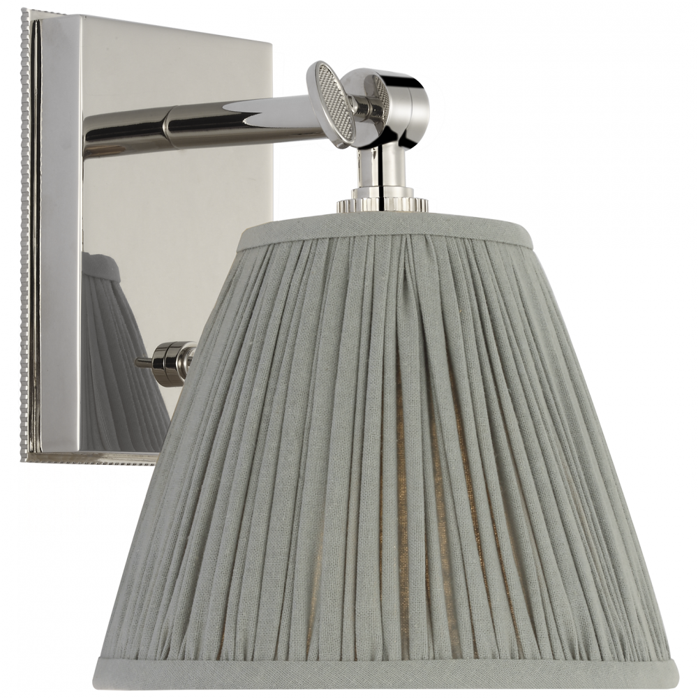 Wimberley Bedside Wall Light in Polished Nickel with Blue Linen Pleated Shade
