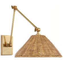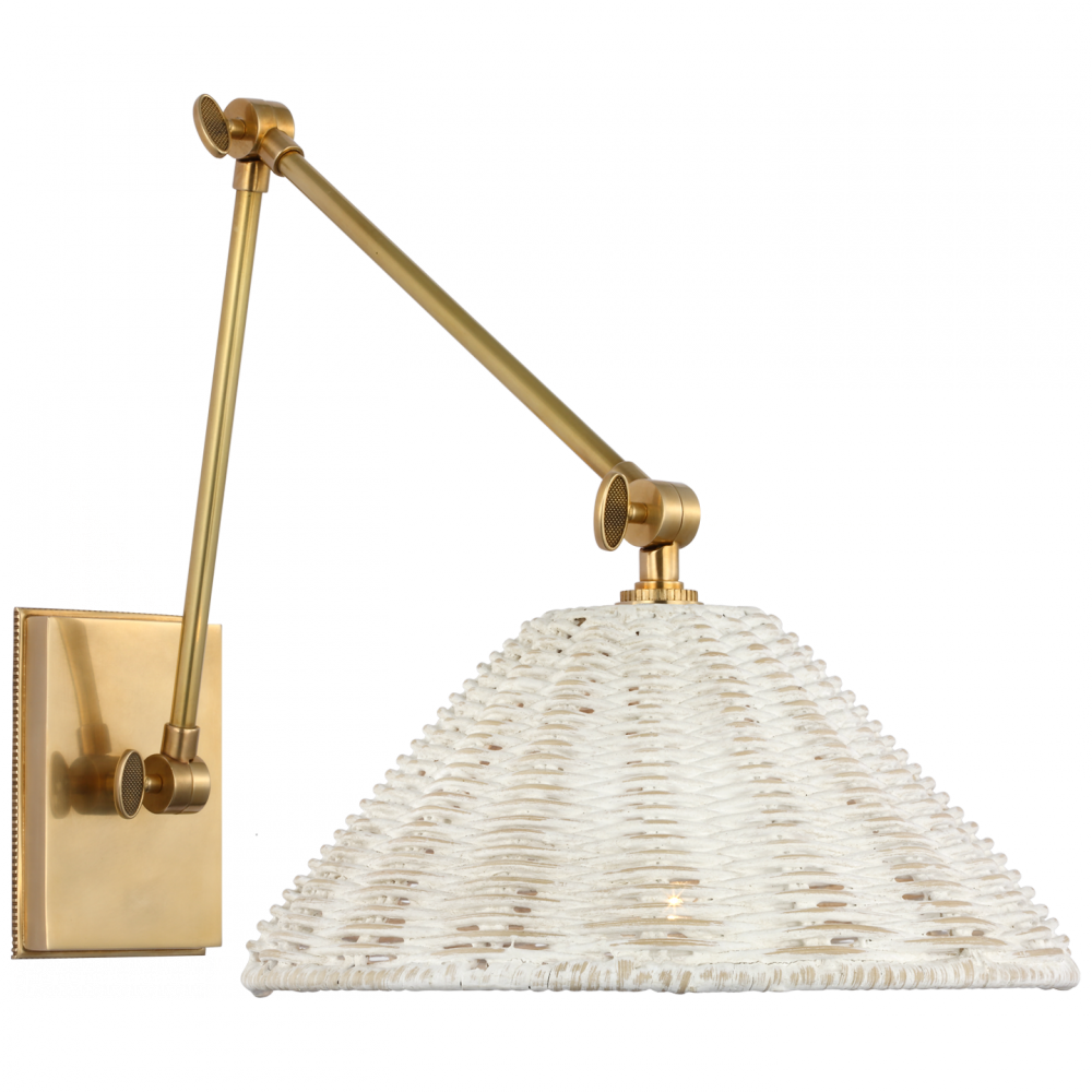 Wimberley Double Library Wall Light in Soft Brass with White Wicker Shade