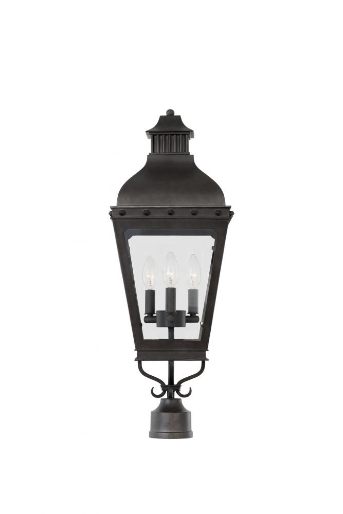 Timeless elegance is the look and feel of the Winchester Lantern Collection. Classic burner details on the crown, banding accented with hand crafted buttons, and the full bodied tapered frame make this a standout. Supplied with Clear Glass Panels and a Powder Coated Aged Iron Finish.