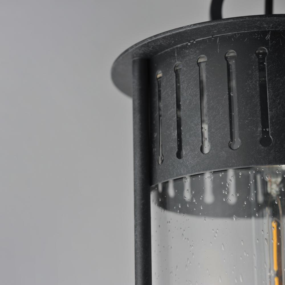 Inspired by the rounded towers of Windsor Castle, this outdoor lighting collection features a hand-applied Black Patina finish on Stainless Steel. A slotted filigree along the top of the cylinder frame allows light to escape, while the clear seeded glass o
