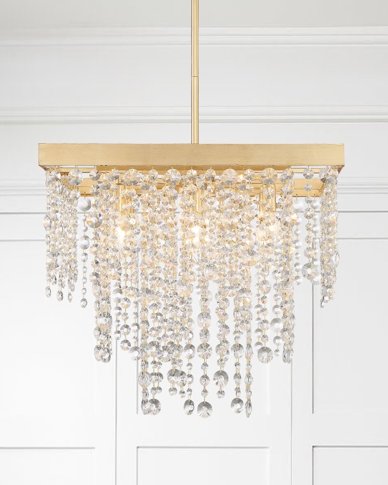 Layers of multi-sized faceted cut crystal strands are arranged on a simple, Black Forged or Antique Gold frame creates optimal sparkle. A perfect complement to any space. The Winham fixture is a sparkling masterpiece when placed as a focal point in a bedroom, dining room or living room.
