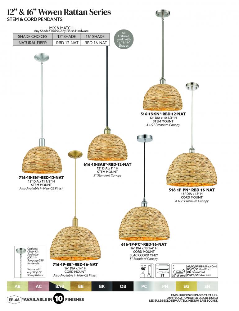 Innovations Lighting 716-1P-AB-RBD-12-NAT - Woven Rattan - 1 Light - 12 inch - Antique Brass - Cord hung - Mini Pendant