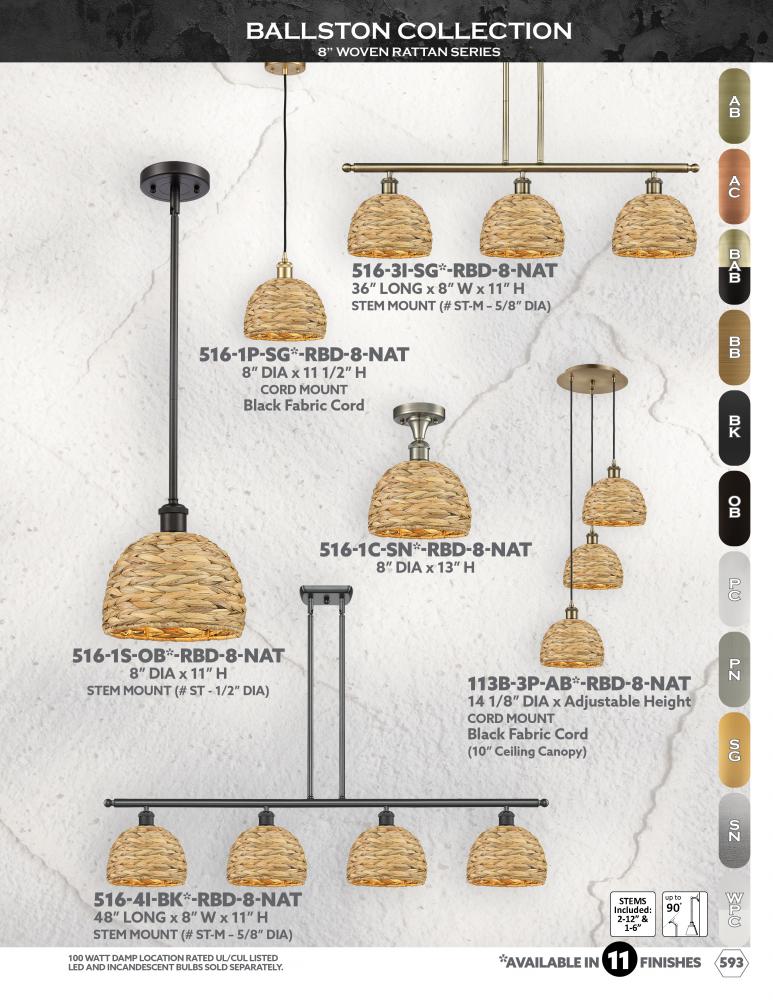 Innovations Lighting 716-1S-CB-RBD-8-NAT - Woven Rattan - 1 Light - 8 inch - Champagne Bronze - Stem hung - Mini Pendant