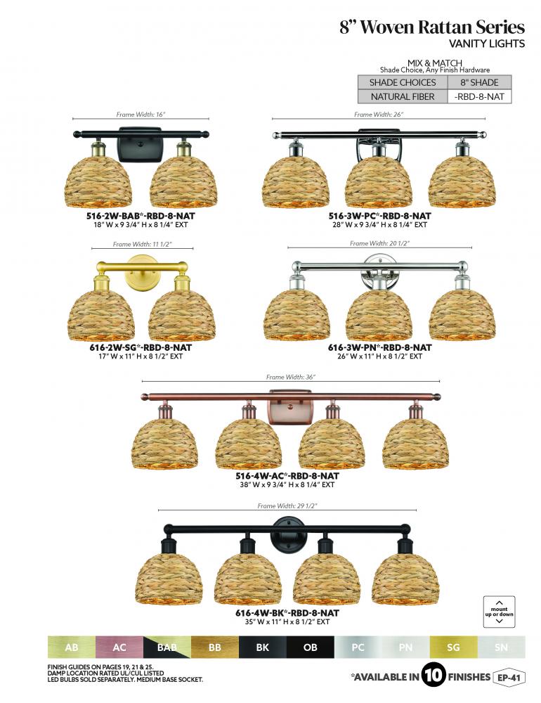 Innovations Lighting 516-2W-AB-RBD-8-NAT - Woven Rattan - 2 Light - 18 inch - Antique Brass - Bath Vanity Light