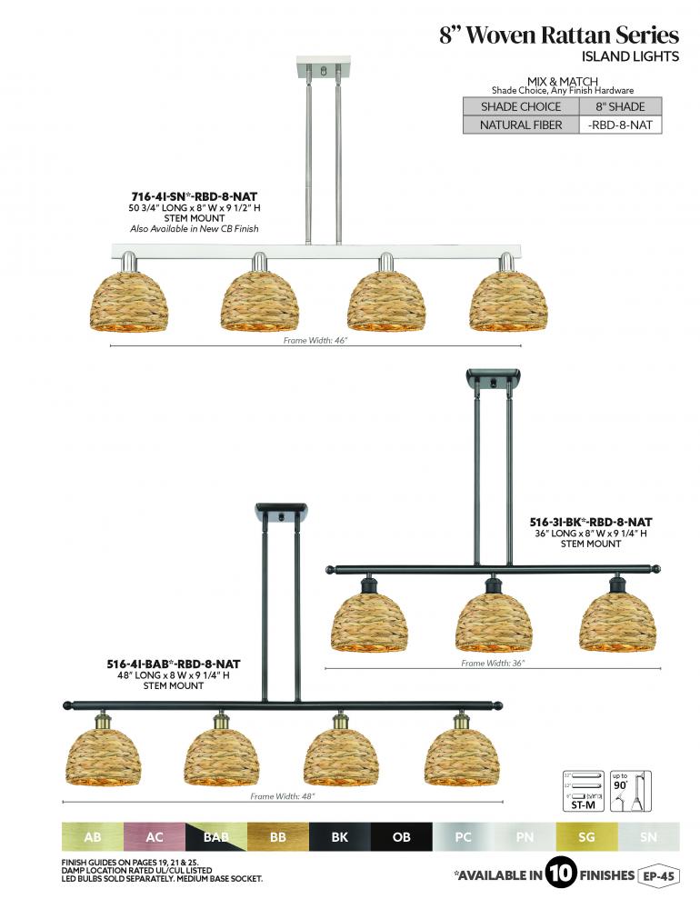 Innovations Lighting 716-4I-AB-RBD-8-NAT - Woven Rattan - 4 Light - 51 inch - Antique Brass - Stem hung - Island Light