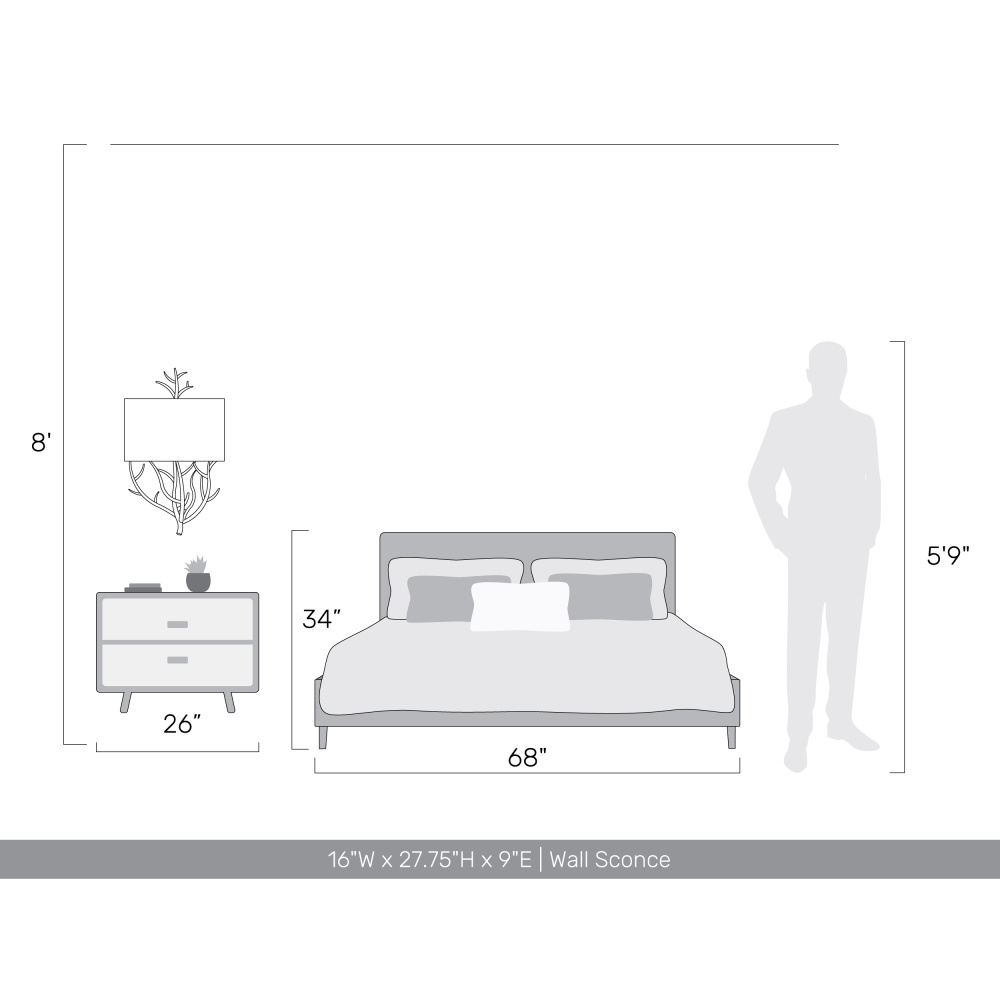Bring Nature-Inspired elegance into your home with the Wry Lighting Arboreal 2-light Wall Sconce in Antique Black Iron. Featuring a metal shade and a rugged Antique Black Iron frame, it creates a welcoming atmosphere. The metal shade casts soft light, perfect for adding ambiance to any space. Capture the raw, authentic charm of a bygone era with our Antique Black Iron finish, showcasing a heavily distressed texture that replicates the beauty of weathered iron, enhancing the character of your home. This sconce enhances hallways, stairways, and bathrooms — or adds cozy ambiance in bedrooms, dining rooms, and entry points. It is Damp Location Rated, suitable for covered and semi-enclosed spaces with occasional moisture. Overall Dimensions: 16"W x 27.75"H x 9"D. Requires 2 E26 Medium base bulbs (not included), max 100 wattage per bulb. Embrace artisanal craftsmanship that brings warm illumination and natural beauty into any decor style.