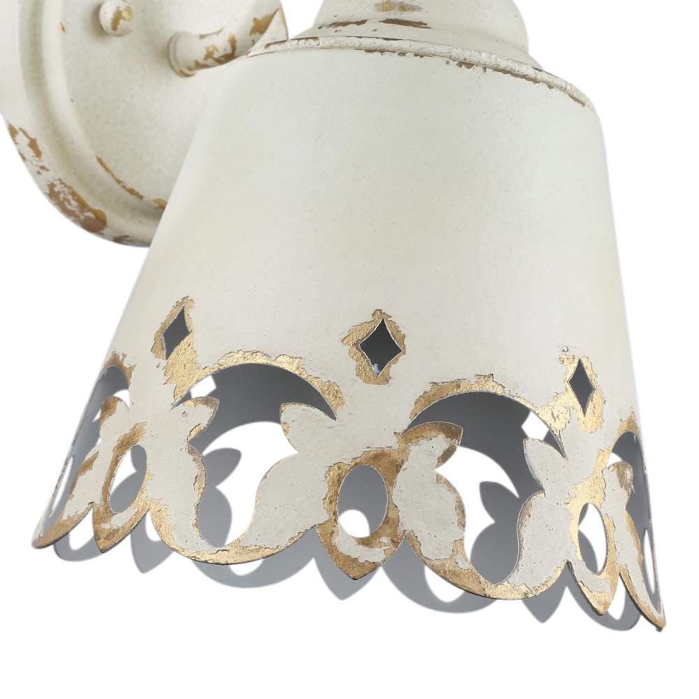 Bring farmhouse elegance into your bathroom with the Wry Lighting Eloise 1-light Vanity in Antique Ivory. Featuring a metal shade and an Antique Ivory frame, it creates a welcoming atmosphere. This metal shade, finished in a creamy, off-white base, showcases a beautiful cracked texture that allows for warm light diffusion. Each piece is hand-painted, featuring exquisite details that emphasize its artisanal craftsmanship, ensuring a unique character in every fixture. Damp location rated, this vanity light is ideal for bathrooms, covered porches, and laundry rooms, providing complimentary task illumination. Designed for simplicity, it does not require additional installation adjustments, ensuring functionality and style. Overall Dimensions: 7.5"W x 10"H x 8.75"D. Requires 1 E26 Medium base bulb (not included), with a maximum of 100 watts per bulb. Transform your bathroom with this charming fixture, blending practicality with timeless décor quality and an inviting touch.